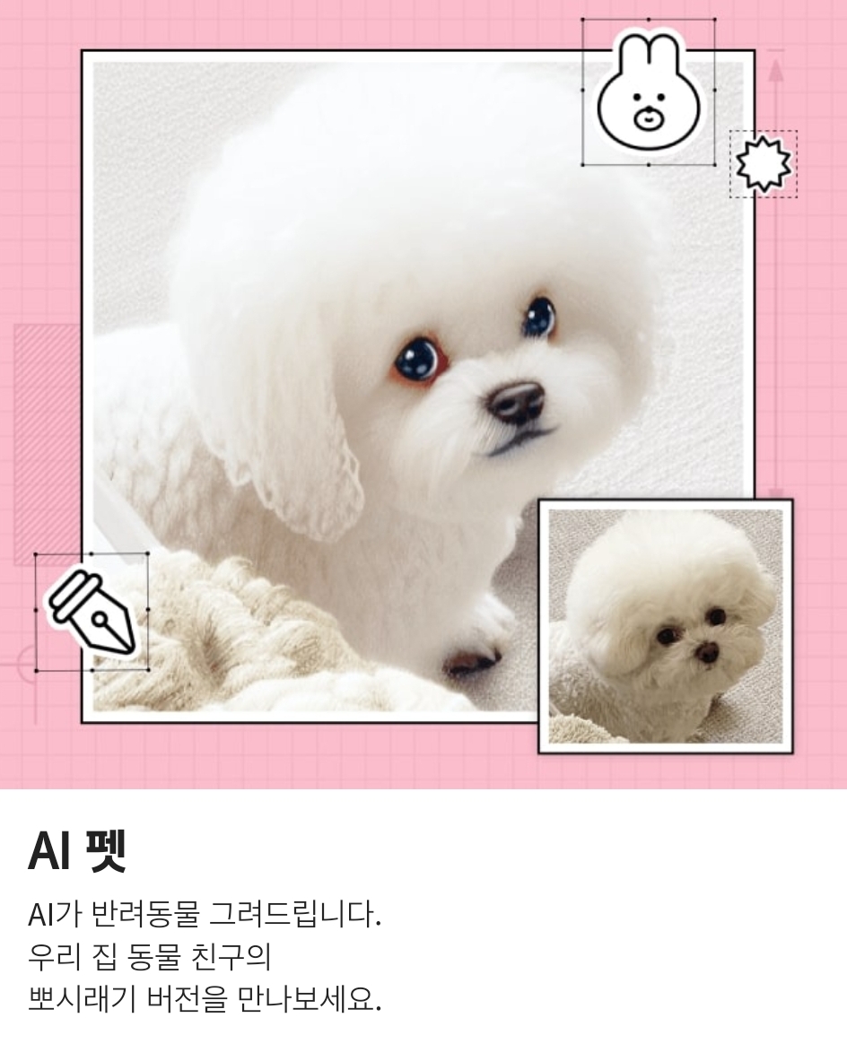 AI 펫 서비스를 통해, 우리 뽀시래기들의 더 귀여워진 모습을 만나 볼 수 있습니다.