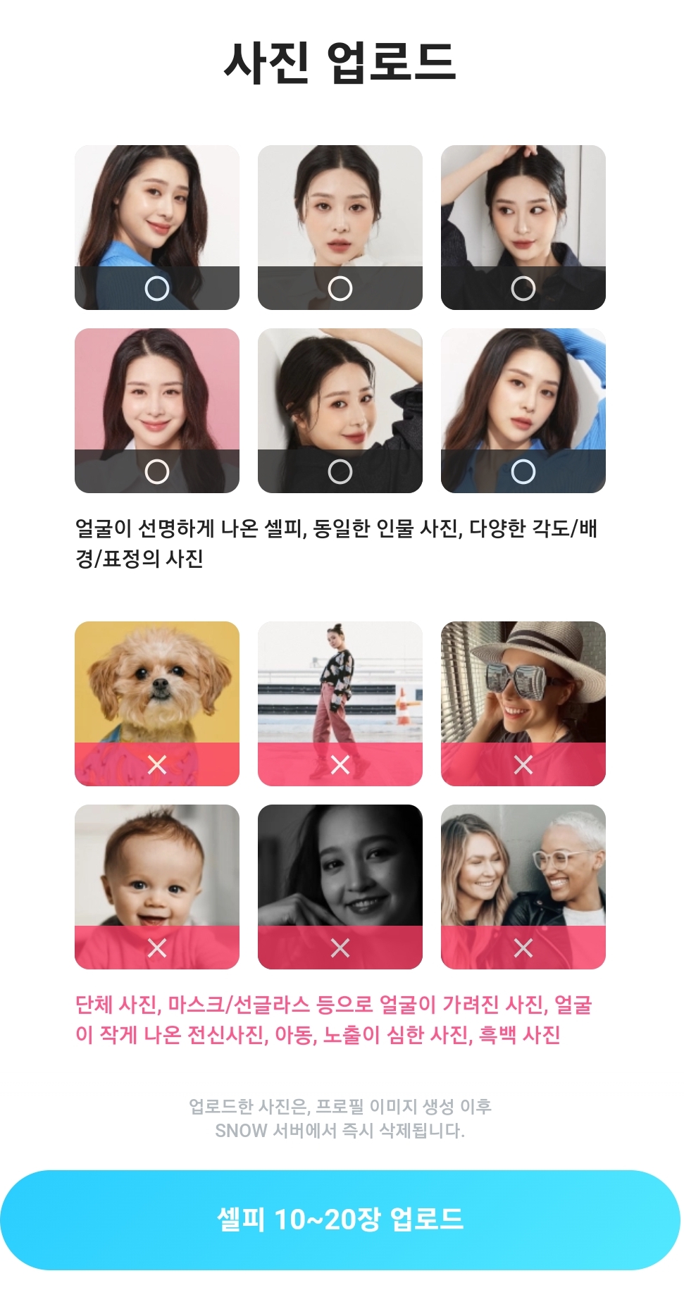 내 사진을 10~20장 업로드하면