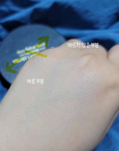 그리고 커버력이 얼마나 뛰어난 지 보기 위해 손등에 바로 펴 발라 봤는데, 사진 상에 바르지 않은 부분과 바른 부분의 차이가 보이시나요?