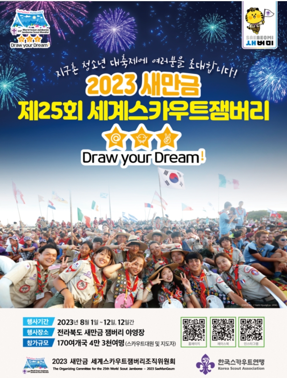 이 세계 잼버리는 158개국의 4만 3,000여 명의 스카우트 대원들이 다양한 프로그램에 참여하고 교류하며 우정을 쌓을 수 있도록 하기 위한 대규모 스카우트 행사이자 대회입니다.