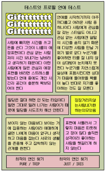 프로필 연애 테스트는 Gift가 나왔는데요,