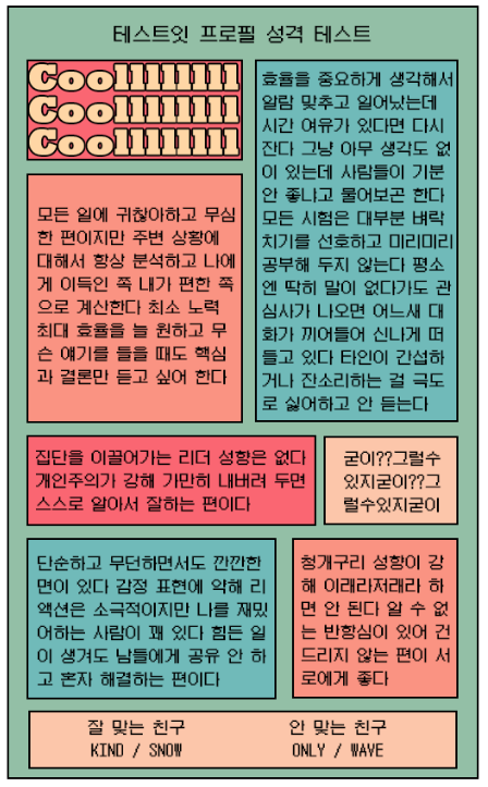 저는 프로필 성격 테스트는 Cool이 나왔고,